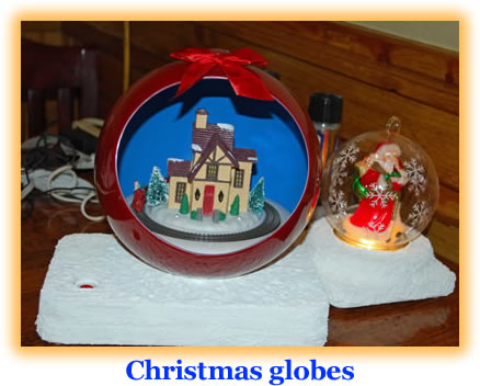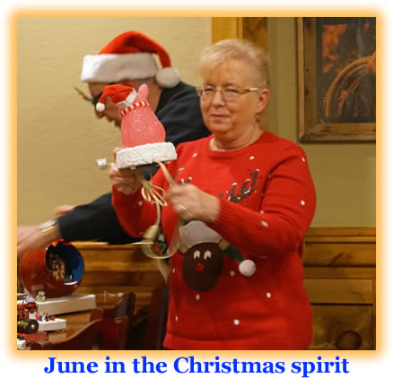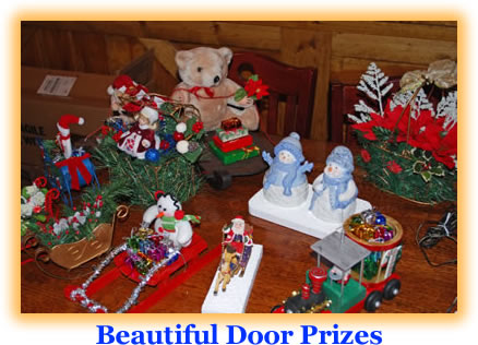 Bob K9IL and Rose W9DHD provided their wonderful array of unique door prizes that were constructed expertly and provided much holiday spirit. There were several Santa's and sleighs, many laden with holly and mini-presents, and ham radio themed scenes. There was even a "blue screen" cutout globe with a Christmas home scene with train. All were beautifully constructed and added to the Christmas spirit and tradition of the event.