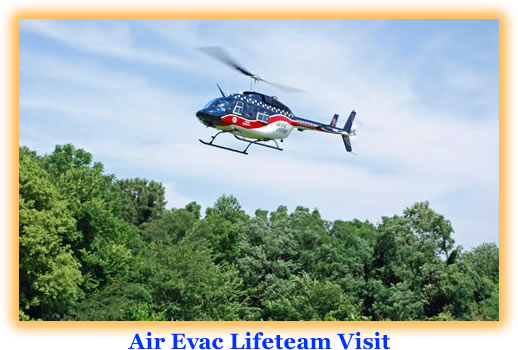 The weather started to cooperate nicely to the point that Steve arranged a little visit. In keeping with our mission of emergency preparedness and to accentuate that mission, Steve, a Med-Evac helicopter pilot, arranged a visit by the Air Evac Lifeteam unit in one of their beautiful Bell 407 helicopters. This unit is based in Martin, TN and they made a nice landing near the western tree line adjacent to the Spiderbeam location. The pilot and two nurses were all quite interested in what we were doing and one was actually a licensed ham. So we showed them around the stations and antennas. They enjoyed themselves immensely and were gracious in posing for photos with their helicopter. They had to run shortly after that as the weather was expected to once again get stormy.