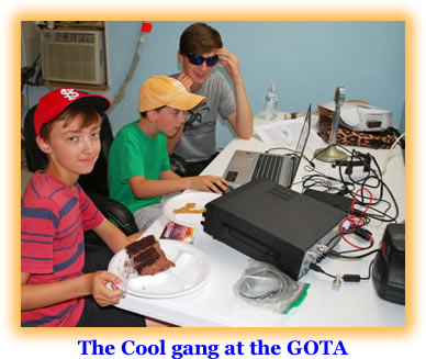 Youth participation was very good this year with 8 kids less than 18 years of age attending, all of which made contacts ! Ben KO4MAO and Patrick KO4HEX, as well as Glenn N4MJ and Jamie WB4YDL all took turns mentoring these youthful operators. Jacob Neill again made a large number of QSO's - 130 contacts made on the GOTA station.