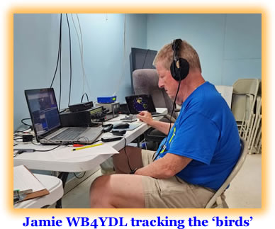 Jamie WB4YDL was able to log a satellite QSO using the same setup as last year. This involved hearing and seeing the signals through an Airspy SDR and its software and transmitting using the Yaesu FT-847. Both Doppler shifts were interlocked and controlled by the SatPC32 software. This year, Jamie was able to make contact with a station in North Texas using the Russian satellite RS-44. This is an inverting analog transponder mode V/U 'bird'. The signals were strong on this 30 degree elevated pass and it was in the log for another 100 points !