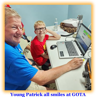 The GOTA station became very busy as eight kids took their turn making contacts with the help of several coaches and "Elmers". Much fun was had by all and there were a lot of smiles on the faces of the young operators !
