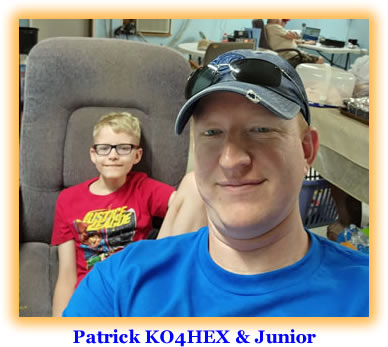 The weather on Saturday morning was beginning to get pretty warm. No rain was in the forecast. Everyone was going to remain in air-conditioned comfort regardless. Even still, Patrick KO4HEX and his son Patrick Jr. decided to pitch a tent and camp for the night. This was the highlight for young Junior's weekend !
