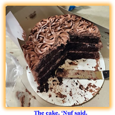 The food was spectacular as usual. Noel, the grill master, was able to provide the burgers and dogs and Harold baked his now famous chocolate cake. None of which had any leftovers. There were sandwiches galore from subs to breakfast, as well as many finger foods.