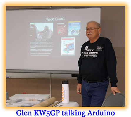 Glen Popiel gave an excellent forum on Arduino. Glen has books published on Arduino, one on ham radio, the other on HSMM. I believe he may have another just on Arduino. Thanks Glen for coming and doing a forum on Arduino.