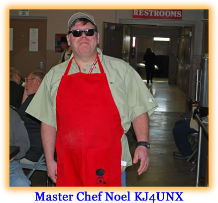Master Chef Second Class and RARC Secretary-Treasurer Noel KJ4UNX fired up the grill once again and supplied the hamfest attendees with great thick hamburgers and awesome pork barbecue. Harold KJ4FTM along with Samantha KK4NNM and other members held down the entrance and kept the line moving.
